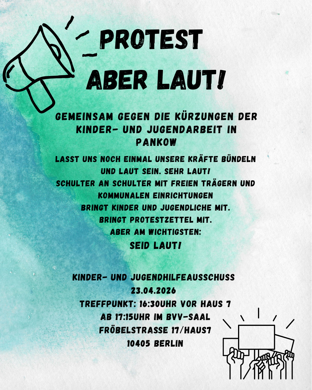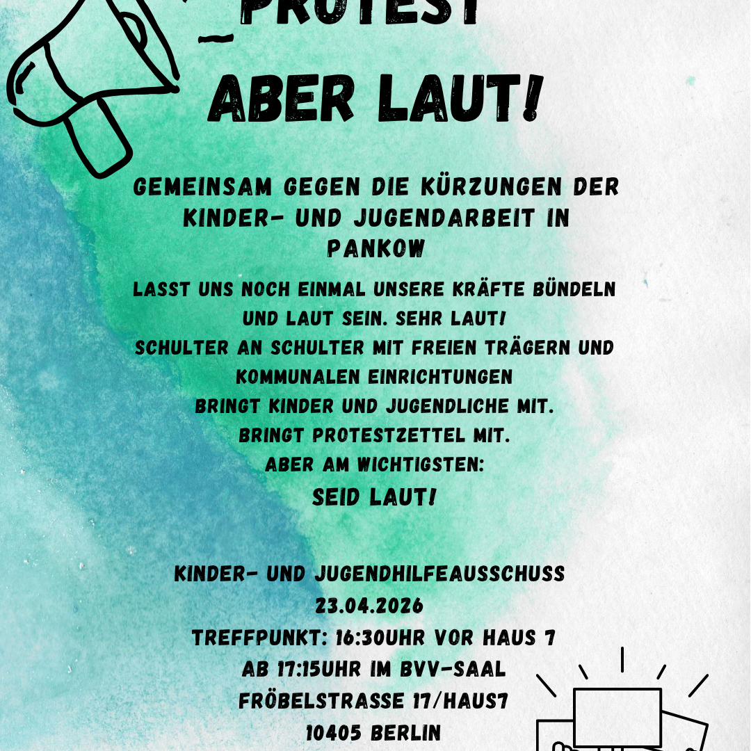 Am 23.4.26 ab 16:30 Uhr demonstrieren wir wieder vor dem KJHA (Kinder- und Jugendhilfeausschuss) in der Fröbelstr. gegen die Kürzung der Tarifmittel für die freien Träger! Alle Unterstützer:Innen sind willkommen!